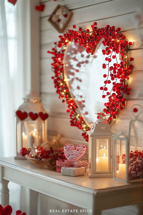 To start with, let's focus on the color palette. Shades of red, pink, and white are synonymous with Valentine's Day, so incorporating these hues into your decor is a must. Consider adding red throw pillows or blankets to your sofa, or hang heart-shaped garlands across your fireplace mantle. These small touches will instantly create a warm and inviting atmosphere.